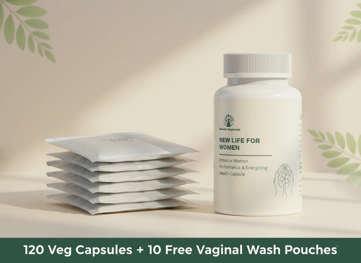 NEW LIFE FOR WOMEN - 120 Veg Capsules + 10 Free Vaginal Wash Pouches.